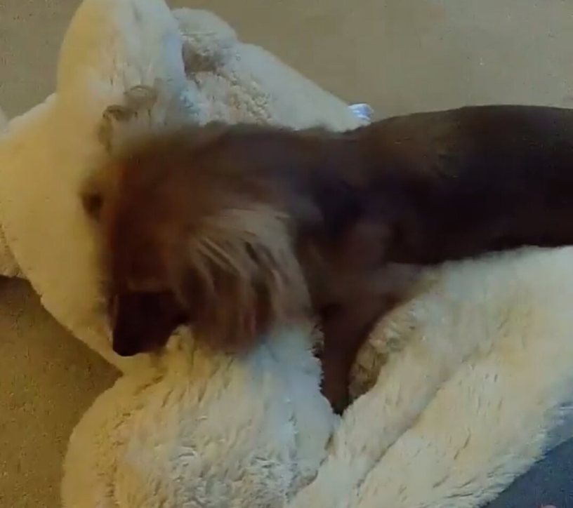 Usually, she loves it. Not today. Her sister’s gone out for a walk, and Pumpkin is Suspicious. It’s too quiet without Poppy dancing around and pulling her ears.