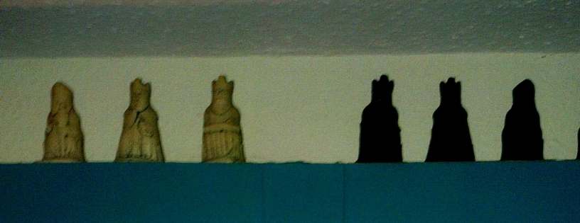 My dad wasn’t one to sit for any length of time so chess was never really his forte, but he tried. And over the top of the curtains at the back of my sitting room, I have the family chess set. My mother made it when she was skiing in Norway. She could have only been twenty-four at the time. These pieces have survived several house-moves and almost sixty years, but they’re too pretty to play with.