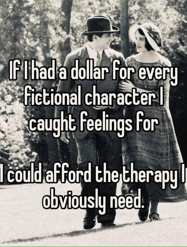 I lose my heart quite completely to fictional people all the time. And we never break up. They go and live on a shelf, not far away, and I can reach out whenever I like. No one’s calling anyone creepy. Pretend people are the best.